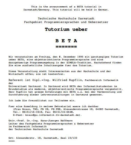 - und beispielsweise im Dezember 1995 ein Tutorium über Beta, mit W. Rupflin