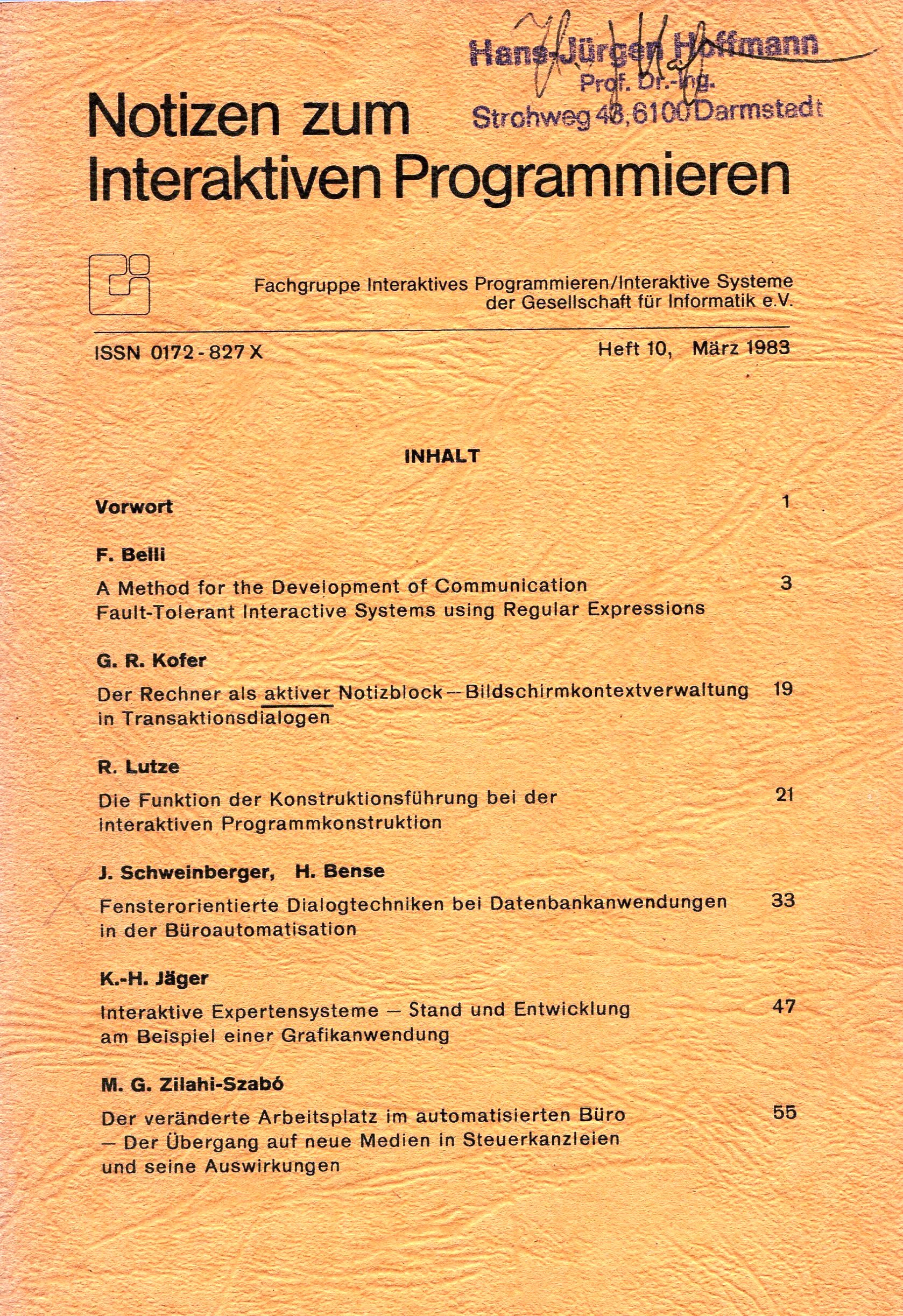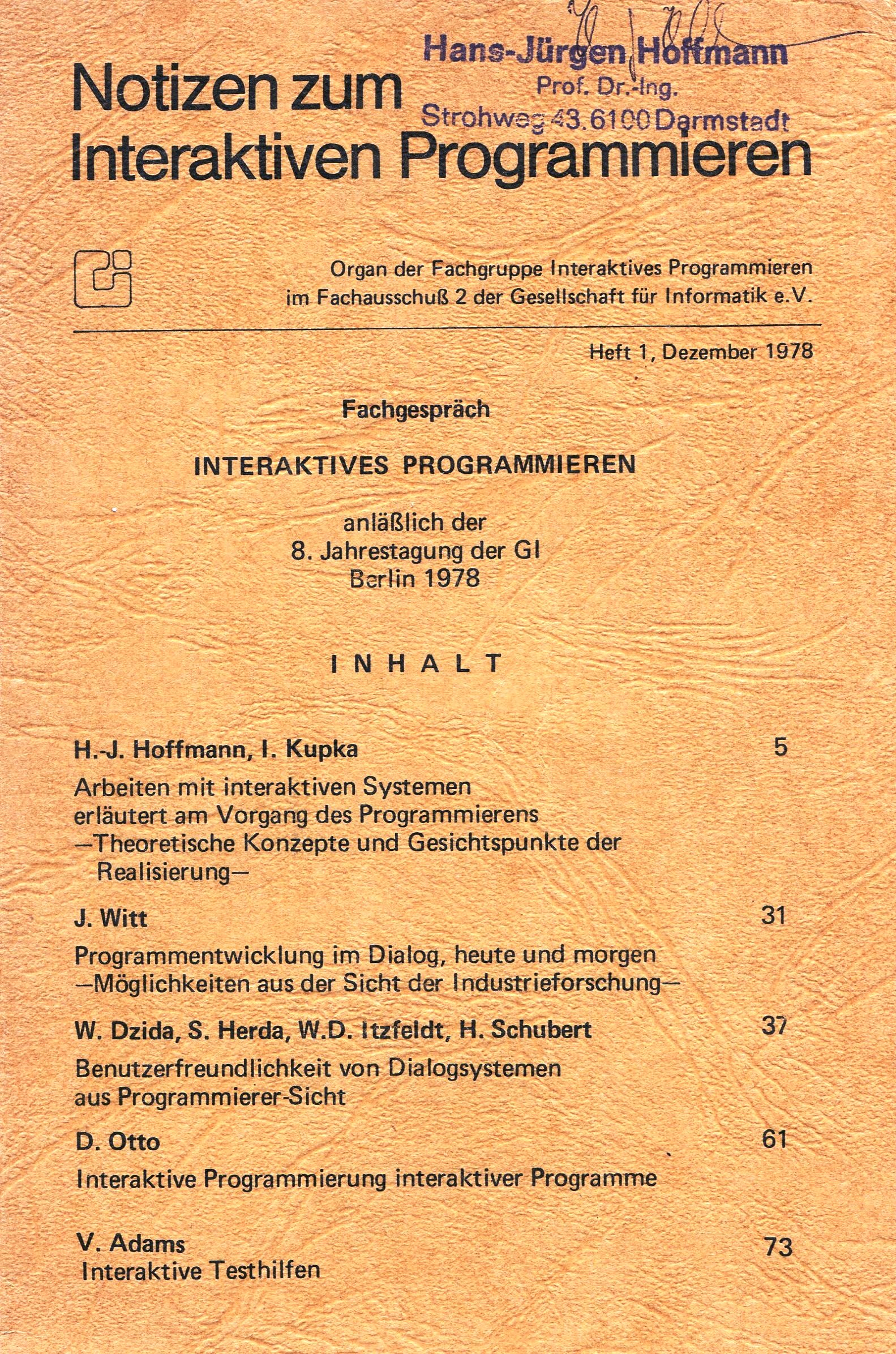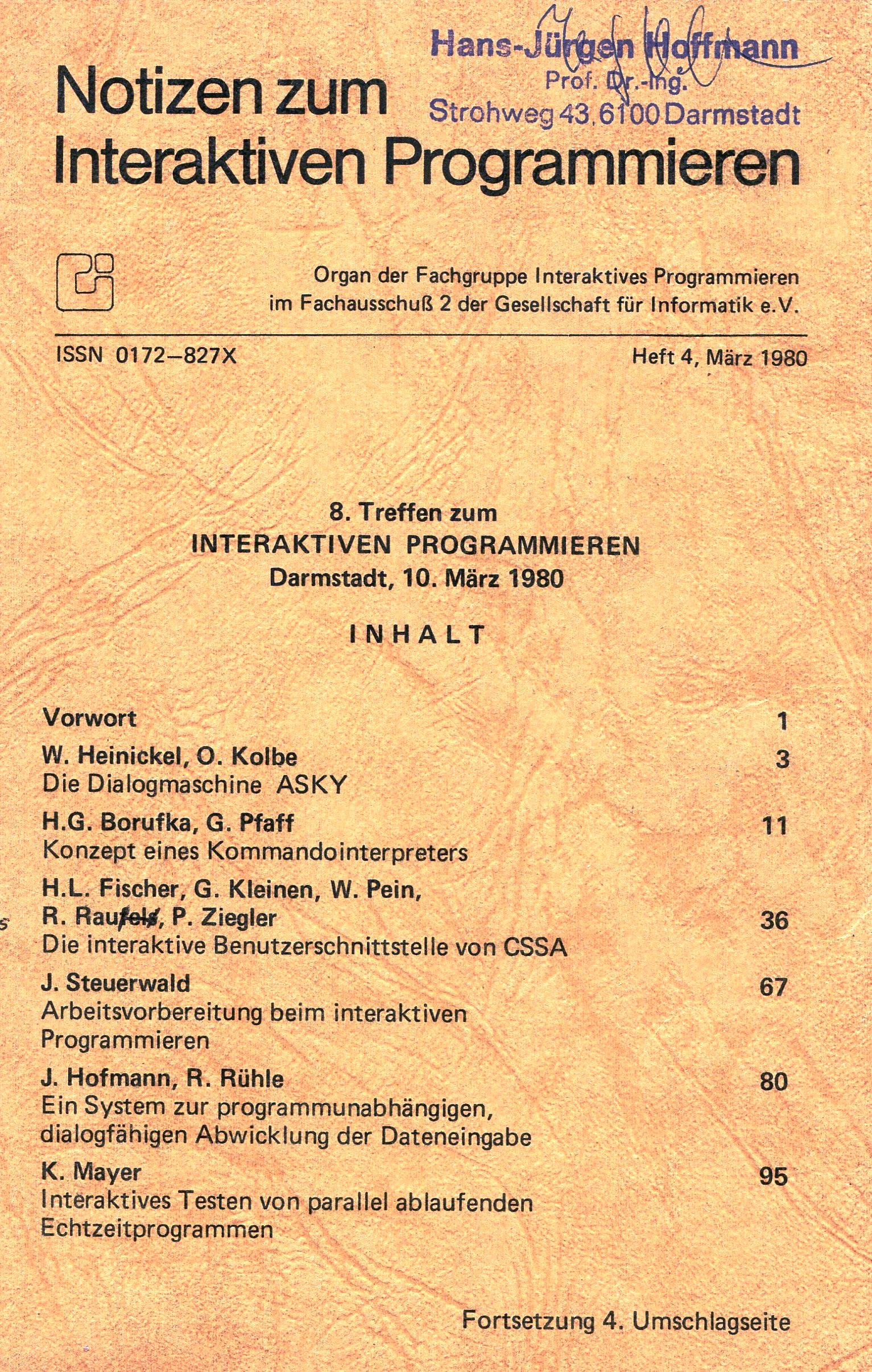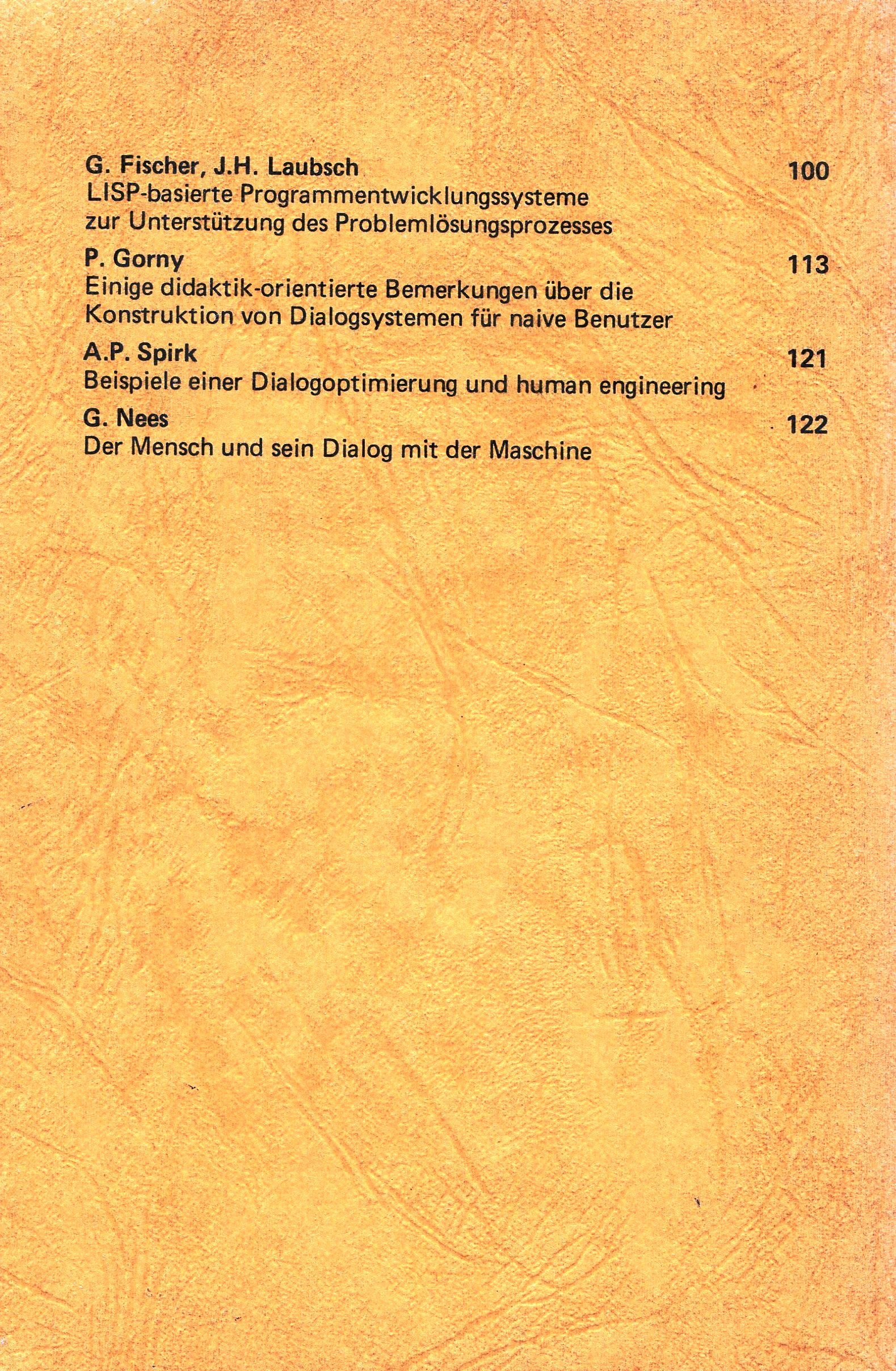- beispielsweise Programmier-Dialog und Human Engineering, Vorderseite,